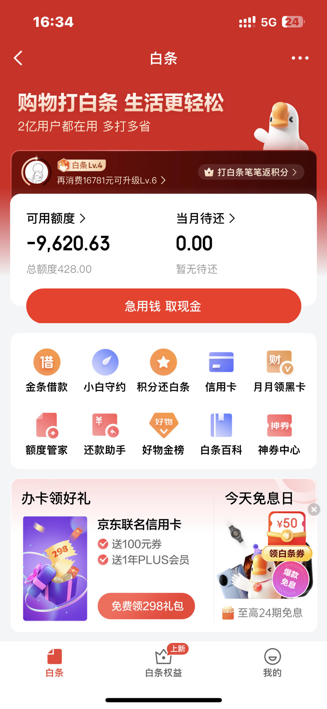 2、京东白条额度是消费信贷额度,不能直接取出,只能用于在京东平台购物消费或部分合作场景支付,所谓“取出”行为可能涉及违规操作,不可取。京东白条的正常使用方式:打开京东APP,在“我的”页面点击【白条】。