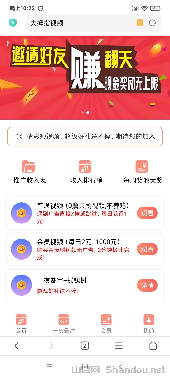 大拇指平台官方首码刚上线,一款结合了“懒人零撸WIFI挂鸡赚米+短视频分荭模式”的手机工具,不用看广告,全程零撸!只要连接WIFI挂着就有收益,自己单干每天保底零撸1元,长久零撸直推一人每天1米,直推10,每天10米,直推100人每天100米,直推1000人,每天1000米...朋友,你今年换几个项目了,这么好的0撸你确定不来吗?