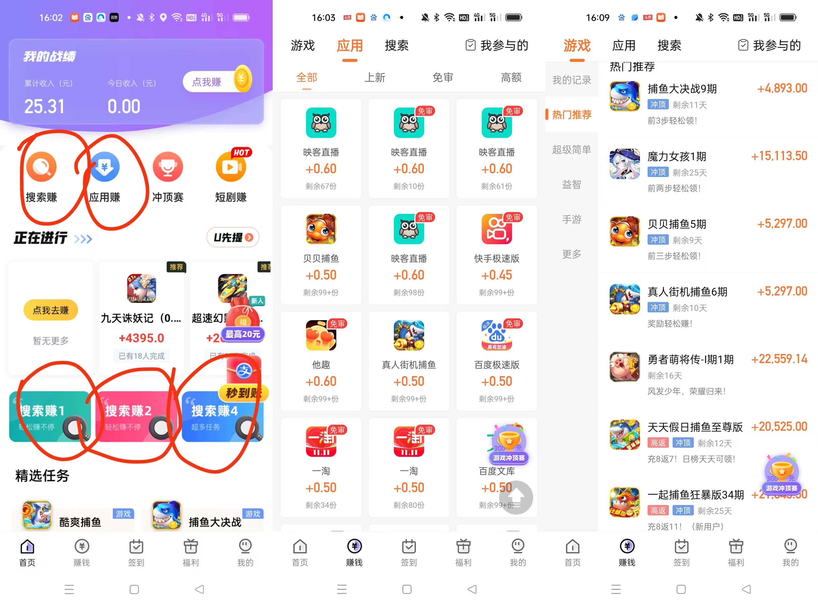 游戏试玩类,里面几佰款游戏大部分都可以通过挂机获得奖励,一款游戏奖励高达几千至几万