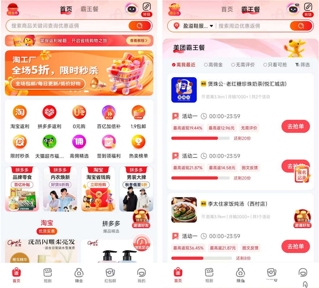 【双重功能】易淘生活不光可以看广告赚钱,同时还能自用购物、点外卖、看短剧等功能进行省钱,可以说即便我们没有多少时间看广告赚钱,也不容忽视这个软件可以给我们省钱,理论上每个月省下三位数是完全可以的