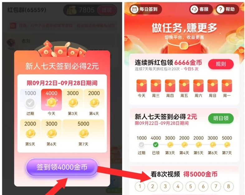 淘热点操作流程,打开淘热点APP,注册并登录,来到平台首页,找到“红苞”页面,点击一下,最后点击“开,只要每天坚持去玩,都会有收获。