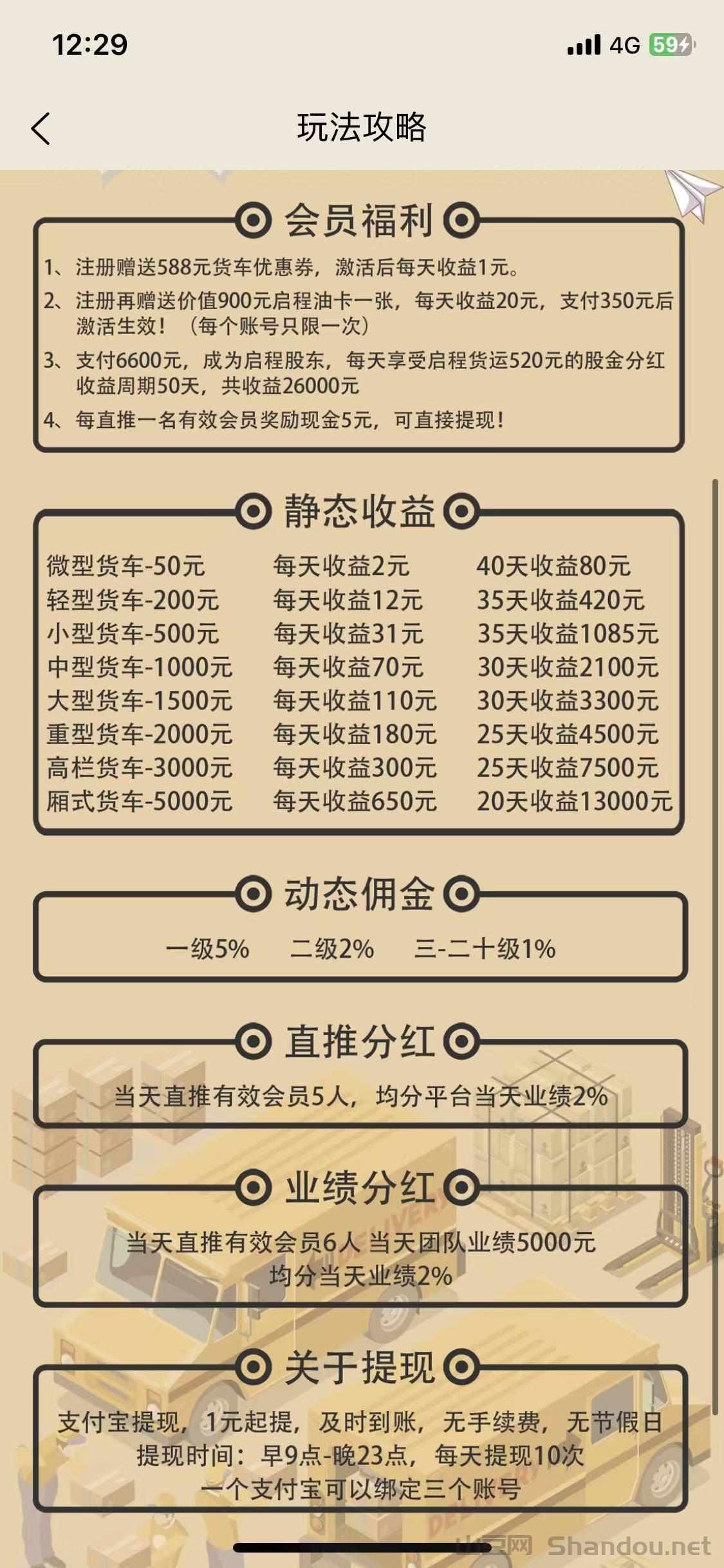启程货运赚米首码上线,新手送启程油卡一张,每天可收入20米,成为启程股东,每天享受启程货运520米的的股金分成,另外每推一位朋友加入,奖励现金5米+运输提成,所有收入1米起提,让每一位朋友满赚而归,成果显著。