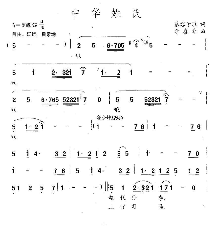 姓氏歌全文共两小节,第一小节包含五句话。这首歌曲选自一年级下册的识字2,由董乐创作,他是中央广播电视总台央广《睡前故事》的主持人。原文《姓氏歌》如此描述:木子李,弓长张。古月胡,口天吴。双人徐,言午许。木易杨,耳东陈。双木林,羊女姜。赵钱孙李,周吴郑王。诸葛东方,上官欧阳。
