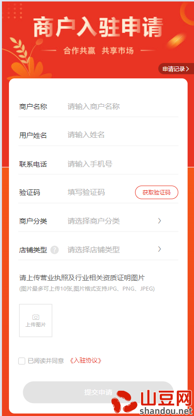 点击我的页面,按照下图申请商家入驻。