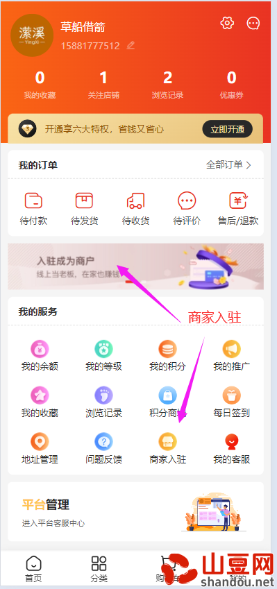 入驻成功后,我的页面会出现“商家管理”的按钮,可以随时管理商品和查看订单。
