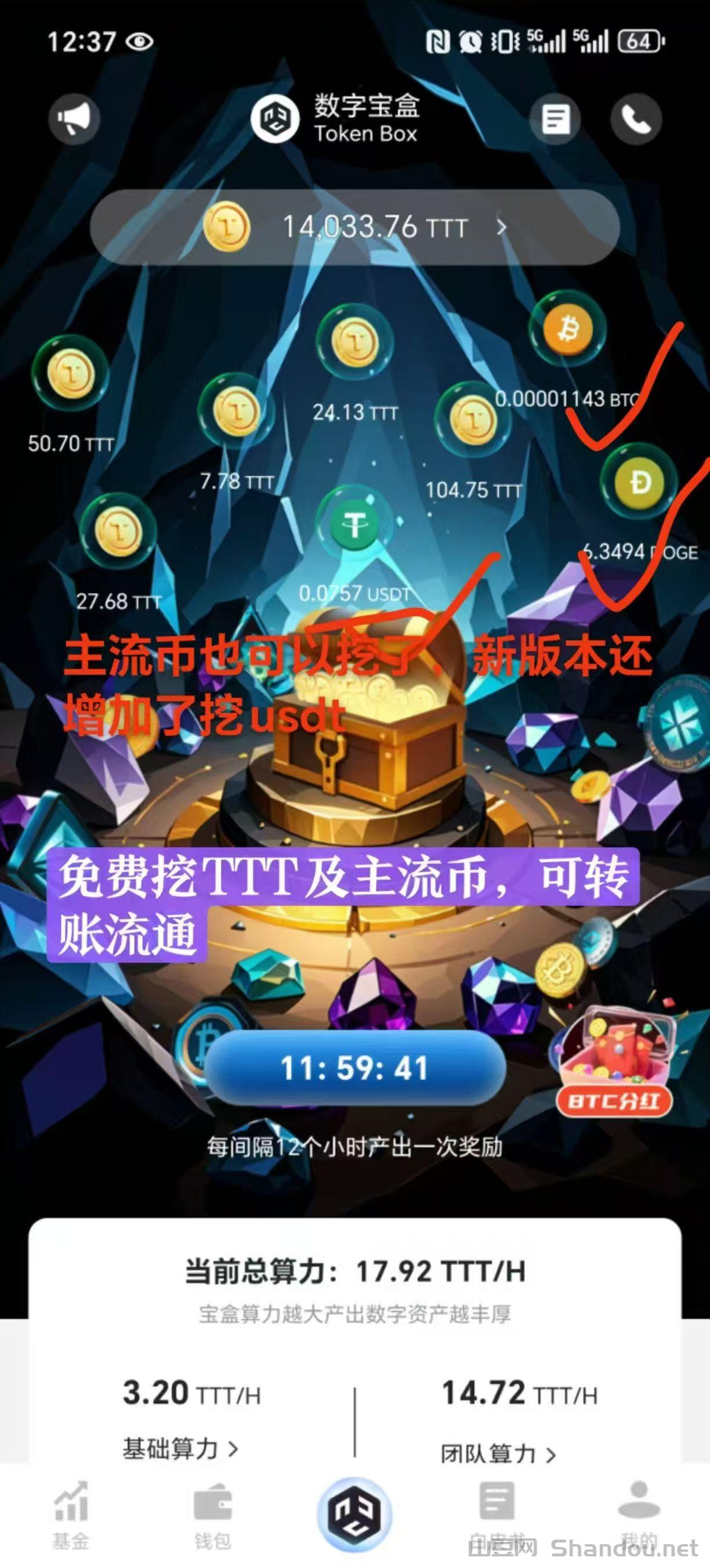 数字宝盒首码 零撸大肉,免費挖平/台币TTT币,目前1小时挖3.2个,一兲76.8个,无广告,每12小时一键开启即可领取。