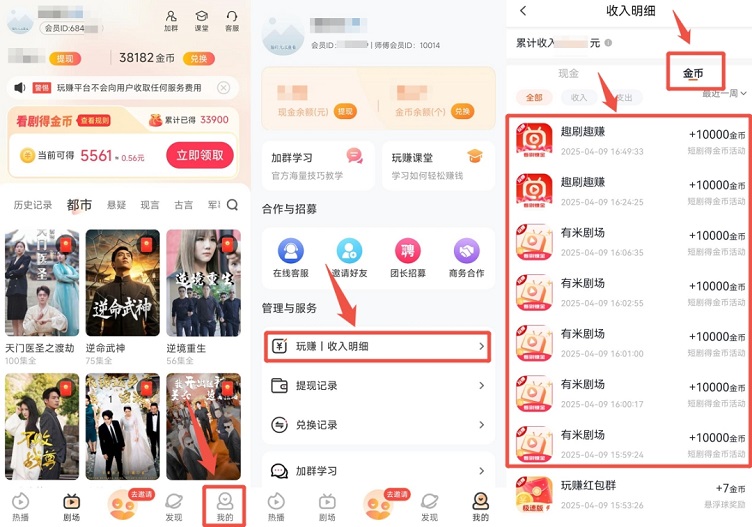 在有米剧场发现页面就可以看到其它子APP,数据都说互通的,我们可以或者看广告,每天的收益会更高,小白也能快速撸米。