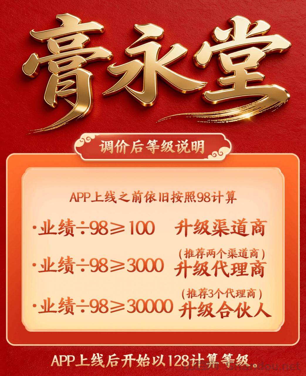 膏永堂的模式很人性化,终身只需要128下单一盒做代理。全程累计业绩升级,不需要花钱买高级别。