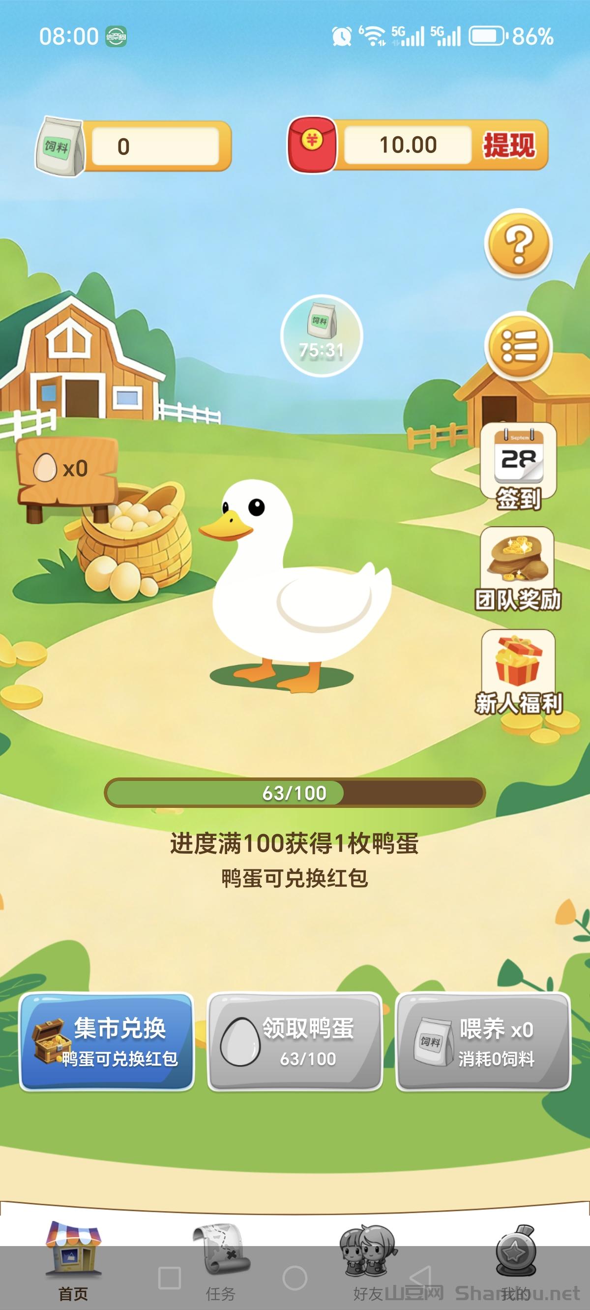 正文 养鸭卖蛋,一个十元 admin V管理员 /前天/5阅读/0评论 0304 零撸天花板鸭鸭庄园上线!免费养鸭,鸭蛋10 元/枚,提现稳!签到得红包,看广、邀友领饲料,好友看广你躺赚饲料。喂鸭产蛋秒变现,适合引流平台、直播推广,多推多赚无上限。复制链接直达,邀请码26715328,零投入开启副业增收!https://duck.qiaoleshenghuo.com/?in Vcode=26715328& refluxos=a10